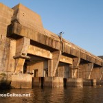 Mais Lorient va sortir anéantie de la Seconde Guerre Mondiale … En juin 1940, dans le cadre de sa stratégie pour gagner la Bataille de l’Atlantique, l’amiral Dönitz décide d’établir son PC à l’arsenal de Lorient. En 1941, les allemands décident d’entamer un gigantesque chantier entre la pointe de Kéroman et l’embouchure du Ter : la construction de trois immenses blocs alvéolés en béton armé, pour abriter les sinistres sous-marins U-Boote … L’ensemble des blocs, achevés en 1943, représente l’édifice militaire le plus gigantesque bâti par les Nazis en dehors d’Allemagne ! Face aux ravages causés par les sous-marins U-Boote, les alliés décident de bombarder les bases opérationnelles des sous-marins : la population civile est évacuée en janvier 1943, les bombardements durent un mois, de mi-janvier à mi-février 1943 … Les 4 000 tonnes de bombes larguées sur la ville détruisent la ville à 85 % ! Ironie du sort : seule la base des sous-marins, objectif des bombardements, est intacte … Après le débarquement allié en 1944 en Normandie, alors que la Bretagne est libérée en août, les combats continuent autour de Lorient : les allemands transforment la ville en poche de résistance, la fameuse « Poche de Lorient » qui s’étend de Pont-Lorois sur la Ria d’Etel aux rives de la Laïta. Cette poche ne cédera que le 10 mai 1945, deux jours après l’armistice. Après la Libération, la base sous-marine porte le nom de l’ingénieur-général Stosskopf, officier alsacien du Génie Maritime, fusillé par les allemands en 1944 après avoir divulgué aux alliés pendant des années des informations sur la base sous-marine et les mouvements des U-Boote.