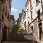 Première ville finistérienne sur la route Nantes-Brest, Quimperlé ne manque pas de charme. Au confluent de 3 rivières, l’Ellé et l’Isole qui se rejoignent à Quimperlé pour former la Laïta, la ville s’est construite en partie sur les flancs de la montagne Saint-Michel (pas celle des Monts d’Arrée évidemment !). En basse ville, les bords de rivière, le quartier ancien, ses vieilles rues et ses maisons à colombages, et l’église Sainte-Croix. Cette église de style roman, ancienne abbaye fondée en 1068, présente la particularité d’avoir été construite selon un plan circulaire. Elle a été en partie reconstruite après l’effondrement de son clocher en 1862. La haute ville s’est développée autour de l’église Notre-Dame de l’Assomption, plus couramment appelée église Saint-Michel. Majestueuse à l’extérieur, le dénuement intérieur est réellement étonnant. A noter que la position de Quimperlé au confluent de 3 rivières provoque de fréquentes inondations en basse ville, en particulier sur le quai Brizeux. Ces inondations sont en plus amplifiées par les marées qui remontent de l’anse du Pouldu jusqu’à Quimperlé.