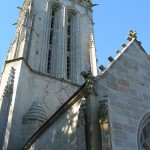 Entre Huelgoat et Brasparts se cache un petit trésor méconnu de l’architecture religieuse du Finistère, une chapelle aux dimensions de mini-cathédrale : la chapelle de Saint-Herbot. Elle impressionne d’emblée par sa tour de 30 mètres, inspirée par la cathédrale de Quimper et complètement disproportionnée par rapport à la taille de l’édifice. La chapelle a été construire au XVème siècle sur les vestiges d’une chapelle édifiée au XIVème siècle et détruite par les guerres de succession. Son pélerinage était si célèbre que le Pape promit en 1389 des indulgences à tous ceux qui participeraient à sa reconstruction qui prit plus d’un siècle. L’intérieur est plus récent puisqu’il date du XVIème siècle. Au milieu du placître un calvaire datant de 1575.