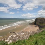 A quelques kilomètres au nord de Coleraine, Portstewart est une station balnéaire victorienne paisible et de haut standing. Elle bénéficie d’une magnifique plage, Portstewart Strand, un long croissant doré dominé par des dunes sauvages qui s’étend à l’est de la ville jusqu’à l’embouchure de la rivière Bann. La plage est gérée par le National Trust (accès payant). Ne cherchez pas de parking, on se gare … sur la plage ! Des pieux séparent les différentes zones de la plage : partie réservée aux baigneurs, partie réservée aux surfers (la plage est un spot réputé) et partie accessible à tous, en particulier aux véhicules. Au loin vers l’ouest, on aperçoit la silhouette des falaises de Downhill et du Mussenden Temple.