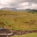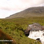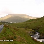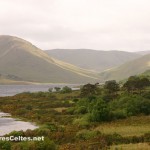 De Leenane, suivre la R336 (direction Connemara Loop) qui longe la River Joyce à travers une large vallée dominée par les Maumturk Mountains au sud et le massif de Devil’s Mother au nord, avec des sommets souvent dans les nuages. Au bout de quelques kilomètres, on pénètre dans une zone de Gaeltacht. Au milieu de la vallée, prendre à gauche une petite route en direction du Lough Nafooey. Aucun risque de se tromper, c’est l’unique carrefour entre Leenane et Maum ! La route grimpe rapidement vers un plateau de tourbières, dominées par le Maumtrasna (673 mètres), point culminant des Partry Mountains. Paysages très sauvages et tout simplement magnifiques. La route descend ensuite brutalement vers le Lough Nafooey, offrant une superbe vue sur la vallée. On pénètre alors pendant quelques kilomètres dans le comté de Mayo pour longer le Lough Nafooey, dans un des plus beaux paysages de la région. Un peu plus loin, après Finny, on traverse un pont qui enjambe un bras du Lough Mask (une route panoramique fait le tour de ce lac, mais je n’ai pas eu l’occasion de tester …). Quelques barques en contrebas de la route attendent leurs pêcheurs, les autres profiteront de la vue superbe ! On repasse alors dans le comté de Galway, pour quelques kilomètres seulement, le temps d’atteindre Cong, capitale du Joyce Country.