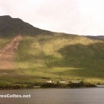 L’unique village du coin est Leenane, aux portes du Joyce Country, à l’endroit ou la River Joyce se jette dans le fjord. Le village n’est pas des plus animés, une supérette, une poste, un centre culturel sans grand intérêt, un hôtel et, quand même, quelques pubs (si la plus grande crainte des gaulois était que le ciel leur tombe sur la tête, la plus grande crainte des irlandais semble d’être de mourir de soif !). Mais le village se situe dans un cadre naturel absolument exceptionnel, cerné par les Patry Mountains (avec le Devil’s Mother qui culmine à 647m), par les Maumturk Mountains et par les Mweelrea Moutains, blotti au fond du fjord de Killary Harbour. Le cadre a conquis Jim Sheridan, qui y a tourné « The Field » en 1990. A proximité du village, en allant vers Westport puis en prenant la R335 vers Delphi, jolies cascades de Aasleagh Falls sur la Erriff River, qui se jette un peu plus bas dans le fjord. Une adresse sympa pour ceux qui tombent amoureux de la région (et il y a de quoi !) et qui veulent y séjourner : l’auberge de jeunesse Sleepzone, à quelques kilomètres du village sur la route de Clifden, excellent accueil, plein de bons conseils et en prime une vue superbe sur le fjord en prenant son petit déjeuner le matin !