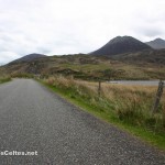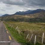 Le meilleur point de vue sur les Macgillycuddy’s Reeks se situe à l’ouest du massif, sur la route entre Beaufort et Glencar. On traverse d’abord un paysage campagnard jusqu’à un petit col qui mène sur les bords du superbe Lough Acoose, dominé par le Carrantuohill. Près de Glencar, la River Caragh, très belle rivière, se jète dans le Lough Caragh, beau lac entouré de forêts sur fond de Macgillycuddy’s Reeks. De Glencar, ne surtout pas manquer deux cols magnifiques. D’abord le Ballaghisheen Pass, accessible via une single track road (route à voie unique avec des passing places, des élargissements de quelques mètres pour permettre aux véhicules de se croiser) qui traverse l’intérieur de la péninsule d’Iveragh. La route traverse d’immenses zones de tourbières, entourées de sommets arrondis. Du sommet du col, vue fabuleuse sur les tourbières et, au fond, la magnifique silhouette des Macgillycuddy’s Reeks. On peut alors descendre vers Waterville en longeant la River Inny. L’autre col à ne pas manquer est le Ballaghbeama Gap, au sud de Glencar. La route passe dans un défilé étroit au pied du Mullaghanattin (771m). Un désert de rocailles, si étroit qu’on ressent une étrange sensation d’oppression … La route descend ensuite vers la R568 d’où on peut rejoindre le Moll’s Gap (vers l’est) ou Sneem (vers l’ouest).