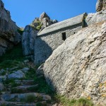 Une des curiosités de Saint Govan’s Head est la Saint Govan’s Chapel, une petite chapelle construite à flanc de falaises ! La chapelle date du Vème ou VIème siècle mais a été restaurée au fil des siècles. Saint Govan était un prêcheur irlandais itinérant du VIème siècle. La légende raconte qu’un jour, alors qu’il était poursuivi par des voleurs, les falaises s’ouvrirent devant lui et le mirent à l’abri de ses poursuivants : il fit construire une chapelle à ce fameux endroit ! En-dessous de la chapelle, les eaux de Saint Govan’s Well (source aujourd’hui tarie) guérissaient les problèmes de peau et les douleurs aux yeux. Des marches taillées dans les falaises permettent de descendre jusqu’à la chapelle. On raconte qu’on ne peut pas compter le même nombre de marches en descendant et en montant, à cause d’un sortilège …