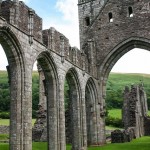Au coeur du Vale of Ewyas, à 9 miles au nord de Abergavenny, Llanthony Priory est un monastère augustin en ruines, l’un des plus anciens de Grande-Bretagne et l’un des rares du Pays de Galles. Vers 1100, William, un chevalier au service de Hugh de Lacy, découvrit lors d’une partie de chasse une chapelle dans laquelle on raconte que Saint-David avait vécu en ermite. Il décida alors de quitter le monde « civilisé » et de vivre en ermite dans cette chapelle, bientôt rejoint par Ernisius, aumônier de la femme de Henry 1er. La nouvelle arriva bientôt aux oreilles de Hugh de Lacy, ancien seigneur de William, qui décida en 1107 de fonder sur les lieux un monastère dédié à Saint-Jean-Baptiste. La communauté religieuse compta vite 40 membres. Mais confrontés aux rigueurs du climat, à la pauvreté des sols et aux attaques des gallois, la communauté entière quitta le monastère dès 1134 pour se réfugier dans le palais de Robert, évêque de Hereford. Une grande partie de la communauté s’installa finalement dans un nouveau monastère près de Gloucester, seule une poignée de chanoines vivant de temps en temps ans le monastère original. Le prieuré tomba peu à peu en ruines et devint propriété privée lors de la dissolution de la communauté en 1539. La propriété est rachetée en 1807 par Walter Savage Landor et appartient toujours, deux siècles plus tard, à ses descendants. Une partie habitable, qui ne fait pas partie du prieuré d’origine, a été transformée en auberge. L’égise du prieuré est en ruines, mais la tour ouest, une partie de la tour centrale et des arches du monastère original restent debouts. Une atmosphère magique se dégage souvent de ces lieux, et celui-ci ne fait pas exception, le charme des paysages autour du monastère n’y étant sans doute pas étranger. A noter que la visite est entièrement gratuite !